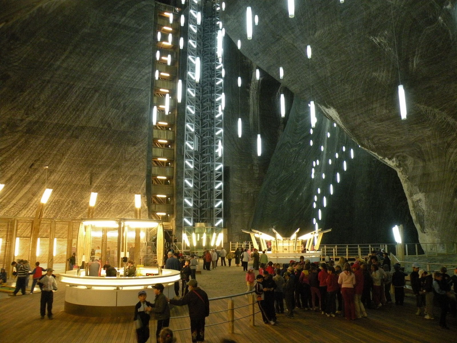 În plus, britanicii îi asigură pe cei care vor să viziteze Salina că nu se vor plictisi: la 112 metri sub pământ, turiştii au la dispoziţie un centru SPA, un amfiteatru pentru concerte, teren de minigolf, o pistă de bowling şi chiar şi un carusel.